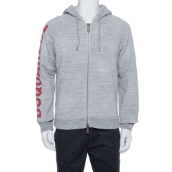 Dsquared2 Grey Cotton Logo Printed Distressed Hoodie Sweatshirt S