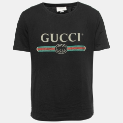 Gucci Black Vintage Logo Print Cotton Distressed Detail T-Shirt M