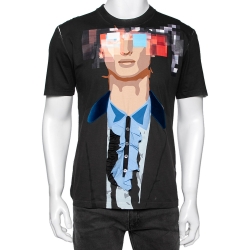 Prada Black Printed & Applique Detailed Cotton Short Sleeve T-Shirt M