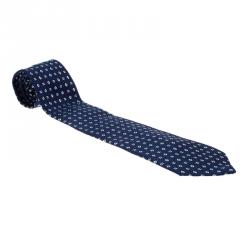 Chanel Blue CC Textured Print Silk Tie