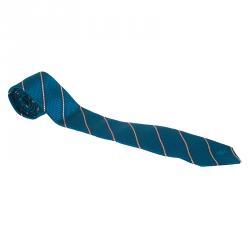 CH Carolina Herrera Green and Navy Blue Striped Silk Tie