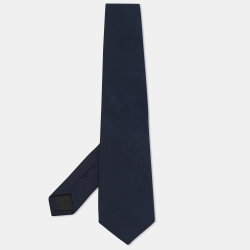 Boss by Hugo Boss Navy Blue and White Checkered Silk Tie