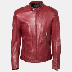 Dolce & Gabbana Red Leather Zip Front Biker Jacket M