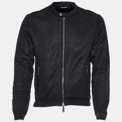 Dsquared2 Black Cotton Knit Foil Print Zip Front Bomber Jacket L