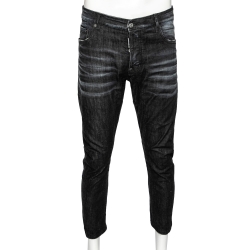 Dsquared2 Black Denim Tapered Leg Black Bull Jeans M