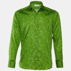 Etro Green Leaves Printed Cotton Button Front Shirt M