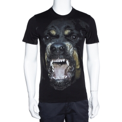 Givenchy Black Rottweiler Print Cotton Cuban Fit T-Shirt XS