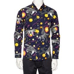 Gucci Navy Blue Planets & Animals Printed Cotton Button Front Shirt S