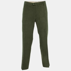 Loro Piana Dark Green Textured Cotton Straight Leg Pants 3XL