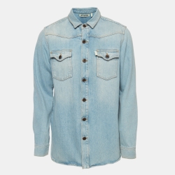 Off-White Blue Washed Print Denim Button Front Shirt M