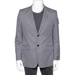 Versace Collection Grey Striped Cotton Single Breasted Blazer L