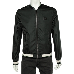 Dolce & Gabbana Dark Green Synthetic Rib Knit Trimmed Bomber Jacket S