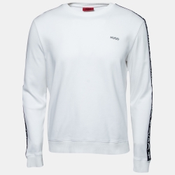 Hugo Boss White Cotton Logo Tape Trimmed Crewneck Sweatshirt M
