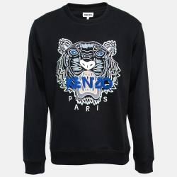 Kenzo Black Tiger Logo Embroidered Cotton Sweatshirt L