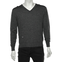 Dior Homme Grey Wool Knit V-Neck Sweater L