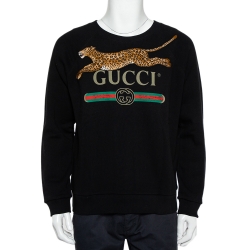 Gucci Black Logo Printed Cotton Leopard Applique Detail Sweatshirt S