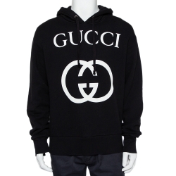 Gucci Black Interlocking G Print Cotton Hooded Sweatshirt S
