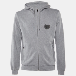 Dolce & Gabbana Grey Cotton Crown Embellished Zip Up Hoodie S