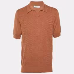 Cruciani Brown Basketweave Knit Polo T-Shirt L