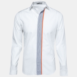 Dior White and Blue Striped Cotton Long Sleeve Shirt S
