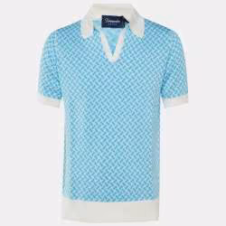 Drumohr Blue Cotton & Linen Knit Polo T-Shirt L