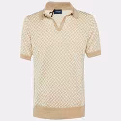 Drumohr Beige/White Cotton & Linen Polo T-Shirt L