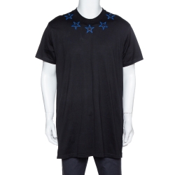Givenchy Black & Blue Cotton Star Embroidered Crew Neck T Shirt S