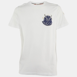 Moncler White Cotton Logo Patch Detail T-Shirt M