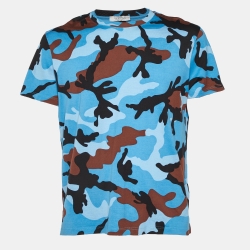 Valentino Blue Camo Print Cotton Round Neck T-Shirt L