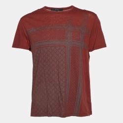 Gucci Dark Red GG Kefia Print Cotton Round Neck T-Shirt M