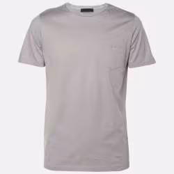 Prada Grey Cotton Logo Embroidered T-Shirt S