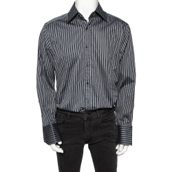 Gucci Grey Striped Cotton Body Slim Fitted Shirt L