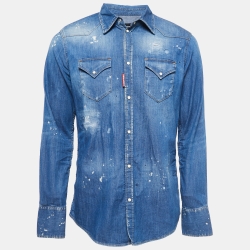 Dsquared2 Blue Washed & Distressed Denim Button Front Shirt L