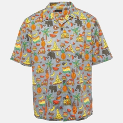 Prada Grey/Multicolor Printed Cotton Bowling Shirt XXL