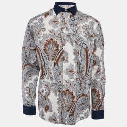 Etro White/Blue Paisley Print Cotton Shirt XXL