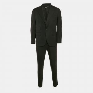 Dolce & Gabbana Black Patterned Wool 3 Piece Suit Set M