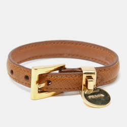 Prada Camelia Flower Leather Gold Tone Key Ring