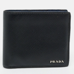 Prada Black Saffiano Metal Leather Logo Bifold Wallet