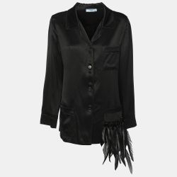 Prada Black Satin Feather-trimmed Long Sleeve Shirt M