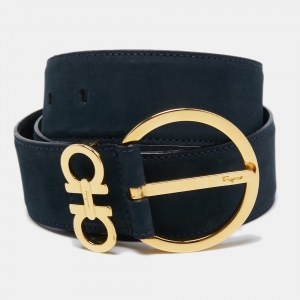 Pre Owned Salvatore Ferragamo Black/Dark Brown Ganici Embossed Leather Cut to Size Reversible Buckle Belt