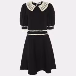Sandro Black Embroidered Knit Mid-Length Dress M
