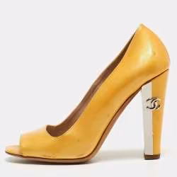 Chanel Yellow Patent Leather Peep Toe Block Heel Pumps Size 36