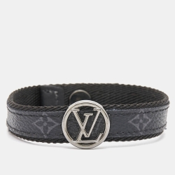 Louis Vuitton LV Circle Monogram Eclipse Canvas Gunmetal Tone Bracelet