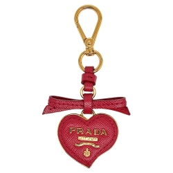 Prada Petal Pink Saffiano Leather Heart Key Chain/ Bag Charm