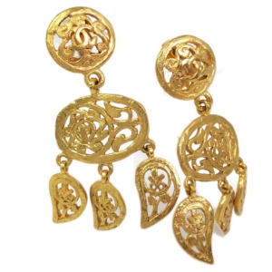 Chanel Vintage Cranberry and Emerald Gripoix Golden Dangling Earrings