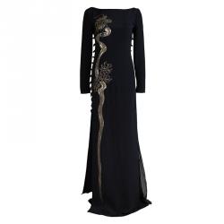 Emilio Pucci Black Silk Beaded Long Sleeve Maxi Dress S