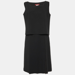 Max Mara Black Crepe Pleated Sleeveless Dress M